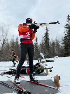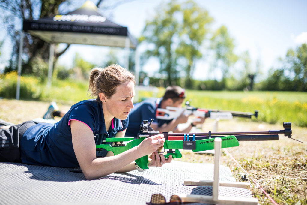 Avec une crosse identique, un système de portage, une bretelle pour le tir couché, des chargeurs et une culasse linéaire pour réarmer entre chaque coup… Bref, on tire avec une vraie carabine de biathlon, seul le calibre change.